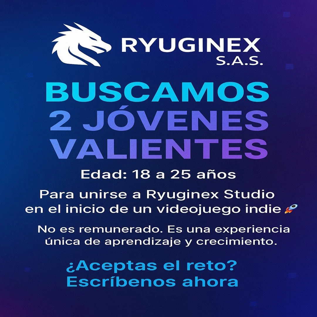 Ryuginex Studio S.A.S. abre sus puertas a 2 soñadores entre 18 y 25 años que quieran vivir la experiencia única de construir un videojuego indie desde cero.